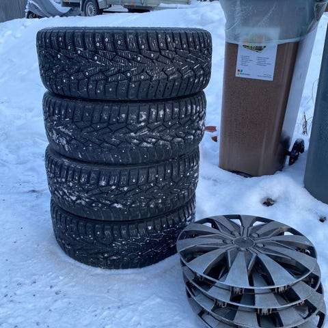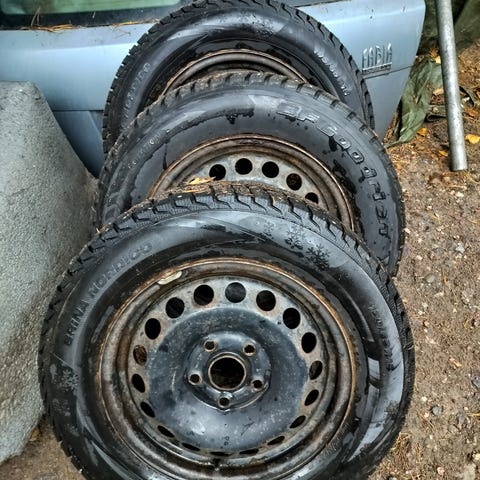 Vm 13 Octavia talvirenkaat. Vanteet suorat mutta tietä nähneet ja renkaissa pintaa mutta paras pito varmasti kadonnut.