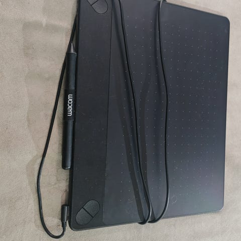 Käyttämättömäksi jäänyt piirtopöytä. Alkuperäinen pakkaus on hukkunut, joten mukana tulee vain piirtopöytä, kynä ja johto.