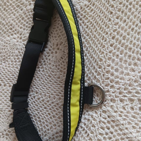 Koiralle jotkut nahkaset vedonestovaljaat. Sit hihna ja pari pantaa. Pantojen koko n. 55cm, muiden mittoja ei ole. Saa tulla sovittamaan jos haluaa.