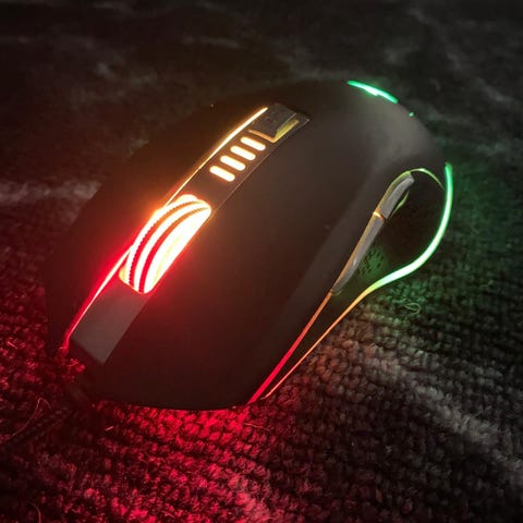 Hyväkuntoinen ja toimiva pelihiiri pitkällä johdolla. Hiiressä on erilaisia rgb-valotehosteita, saa myös pois päältä.