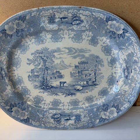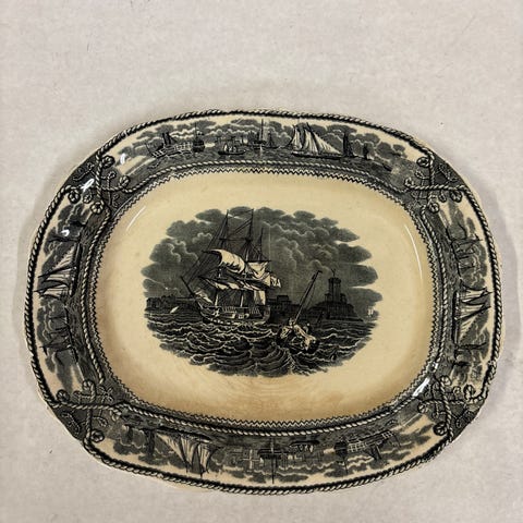 Vanha antiikkinen englantilainen tarjoiluvati, valm. 1891-1920. Pituus 25,5cm.