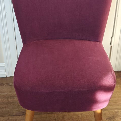 Nojatuoli, jossa ruskea kangasverhoilu. Istuinosassa ja selkänojassa on kuviollinen kangas, käsinojat ja sivut ovat yksiväristä ruskeaa kangasta. Tuolissa on puiset jalat. Sopii olohuoneeseen tai muuhun oleskelutilaan istuimeksi yhdelle hengelle.