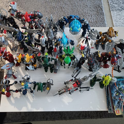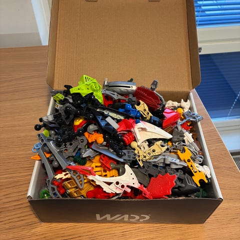 Myydään LEGO Bionicle -settejä alkuperäisissä purkeissa ja pakkauksissa.