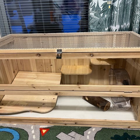 - Jyrsijän terraario 100x50x50. Tosi käytännölliset ja helpot kannet liikutella. Lisäksi tiivis väliverkko jossa tuplaverkko, jos tarvetta laumaeläinten totuttamiseen/erottamiseen. Yhdessä etureunassa pieniä kolhuja, näkyy kuvassa.