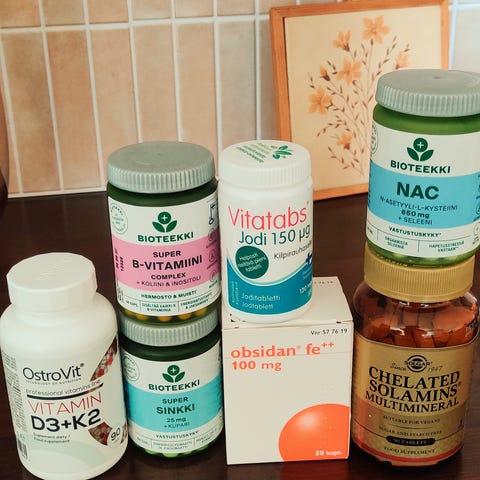 Lisäravinteita koko setti, sinkki, seleeni, rauta, d3, multimineraali