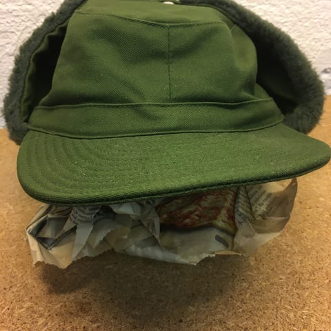 Tummanruskea vintage karvalakki, koko 57. Täysin ehjä.