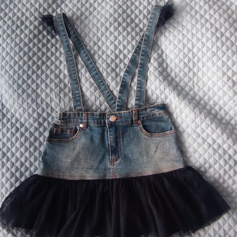 lasten farkku-lappuhame, jossa on suloinen nalleaiheinen tasku.