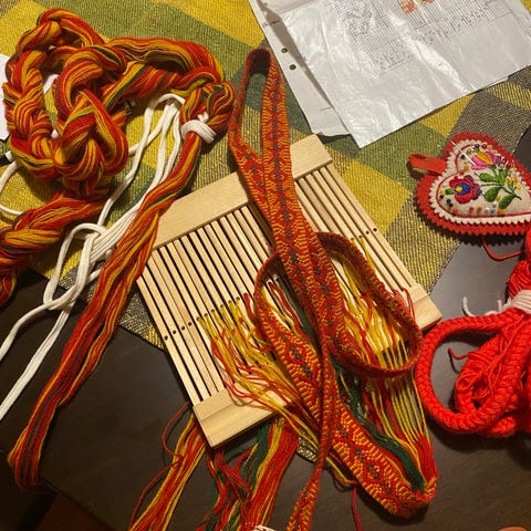 Myynnissä tuuterinpuvun palmikkonauhaa. Pituus 2,4m. Todella taidolla tehty!