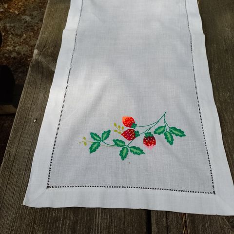 Käyttämätön kaitaliina kauniilla herkillä kirjailuilla. Pääsiäiseksikin kaunis! Siisti second hand! Puuvillasta tehty?