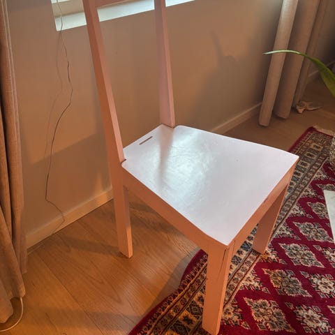 Annetaan IKEA Kaustby harmaa tuoli, massiivipuuta.