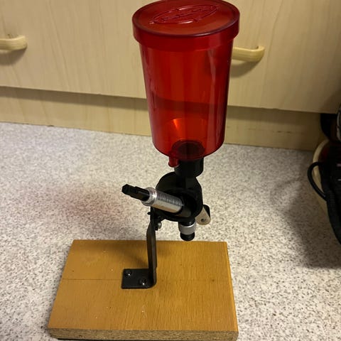 Hornady Lock-N-Load ruutiannostelija. Kulkeutuu tarvittaessa Nurmijärvelle.