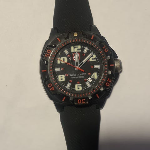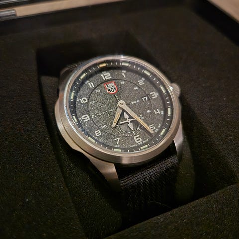 Luminox Sentry 43mm rannekello (XL.0215.SL). Tritiumampullit viisareissa sekä kellotaulussa. Lisäksi kellotaulun numerot pimeässä hohtavat.