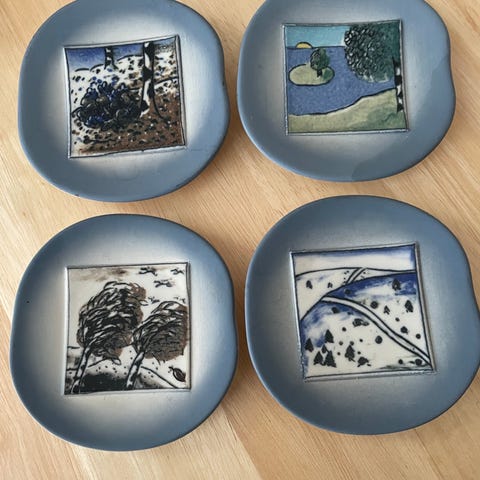Arabia Heljä-Liukko Sundströmin Vuodenajat seinälautaset 4 kpl yhteishinta