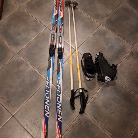 Kunto näkynee kuvissa. Suksissa käytön jälkiä näkyvissä, mutta ihan hyvät vielä seuraavalle.
