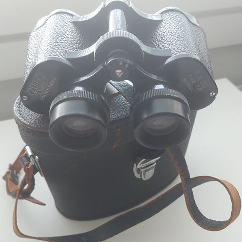 Vähän käytetyt kiikarit, alkuperäisessä nahka kotelossa. Ei merkkiä. Lähinnä ollut kirjahyllystä koristeena.