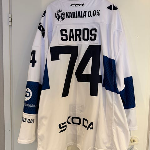 Juuse Saroksen Suomen maajoukkueessa käyttämä Game Worn -pelipaita