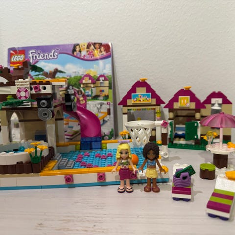 Kuvanmukainen Lego Friends sarjan Heartlake Cityn puisto. Setti on hyvässä kunnossa: kaikki palikat ovat tallella ja ne on tarkistettu ohjekirjan mukaan.