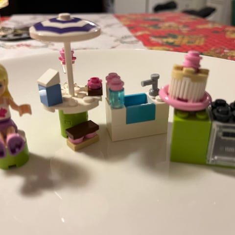 pöytä johon sopivat lego-palikoita, normaalikokoisia palikoita