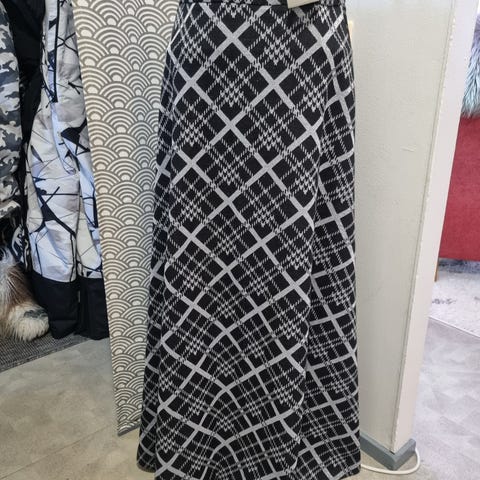 Hyväkuntoinen. Ompelijan tekemä. Viskoosia tai asetaattia, laadukkaan tuntuinen kangas.
