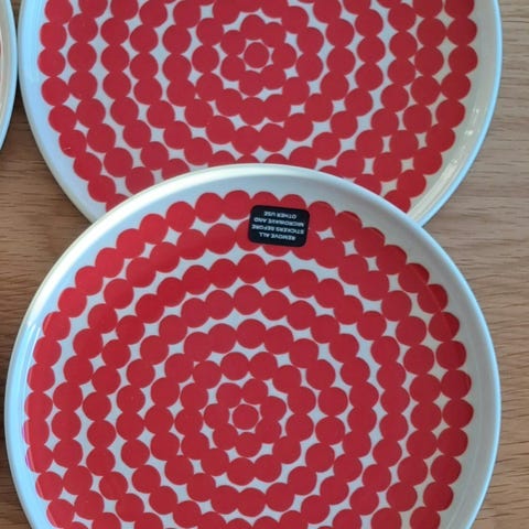 Myydään uusi Marimekon Kuusikossa astiasetti. Setissä on yksi 2,5 dl:n Oiva-muki ja yksi pieni, 15 x 12 cm:n kokoinen Oiva-lautanen.