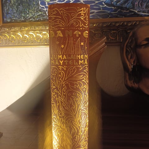 Tekijät/käsikirjoittajat: Dante ; suomennos: Eino LeinoKustantaja: WSOYUlkoasu: 239 sivua : kuvitettu ; 22 cmJulkaistu: 1924KovakantinenHuom. sivuja irti, iän tuomaa kulumaa ja kellastuneisuutta