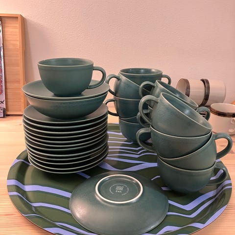 Arabia 24H vihreät kahvikupit ja tassit 6kpl. Design Heikki Orvola