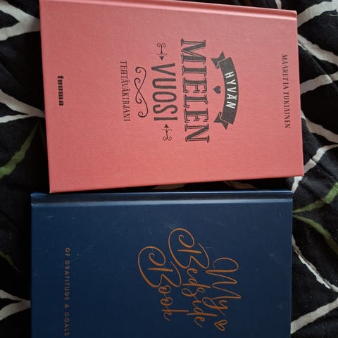 Harjoituskirjat "Kaikki kääntyy hyväksi" sekä kirja "Hyvän mielen vuosi". Uusia, ei täytetty/luettu. 12 e kpl tai 20 e yhteensä.