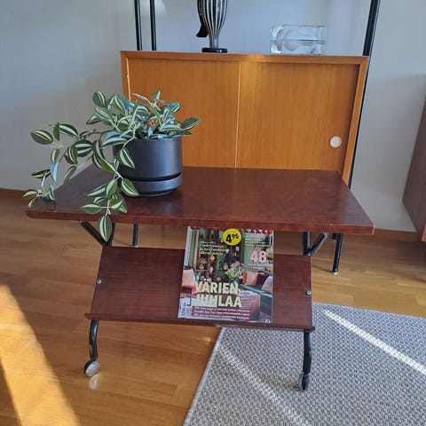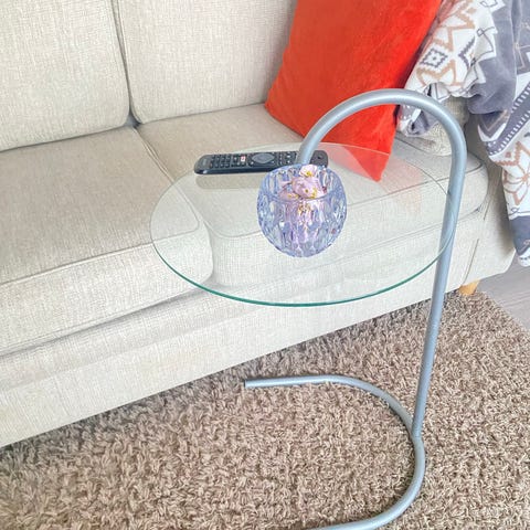 Suuri lasilevy, kolmionmallinen, pitkä sivu 2 m. Pikkupöytä alla ei kuulu kauppaan. Kyseessä on erittäin vanha Ikean sohvapöydän kansilevy, paksua lasia. Ajalta ennen kuin Ikea oli tullut Suomeen. Pöydän jalkaa ei enää ole.