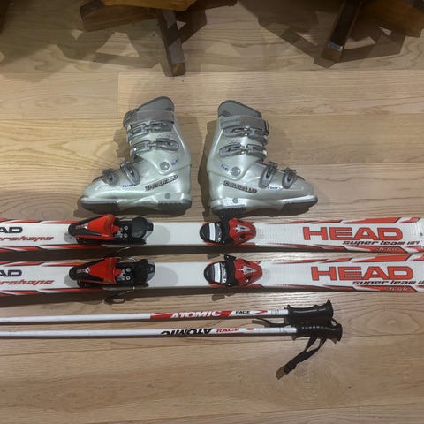 Sukset 120cm. Pohjat siistissä kunnossa ja valmiiksi voideltu eli heti valmiit mäkeen. Monot koko 36-37 ja sauvat. Hinta 95 euroa.