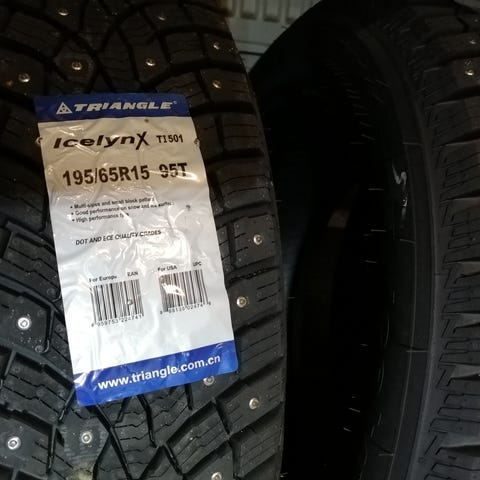 Uudet 185/60R15 Triangle nastarenkaat asennettuna.