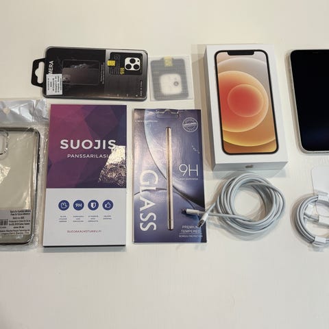 Myydään siistissä kunnossa oleva valkoinen iPhone 12 64GB muistilla. Laitteessa on vain lieviä käytön jälkiä. Kauppaan sisältyy SIM-avaaja sekä latauskaapeli.