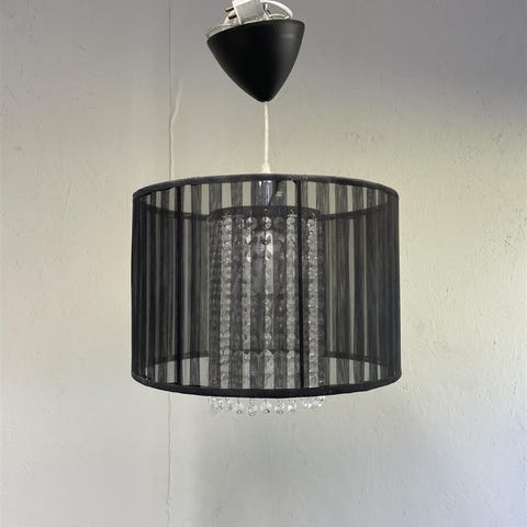 Tyylikäs AH Belysning moderni kattovalaisin, jossa on musta kangasvarjostin ja koristeelliset kristallit. Kolme valopistettä.Valaisimessa on joitakin käytön jälkiä, mutta se on yleisesti hyvässä kunnossa.