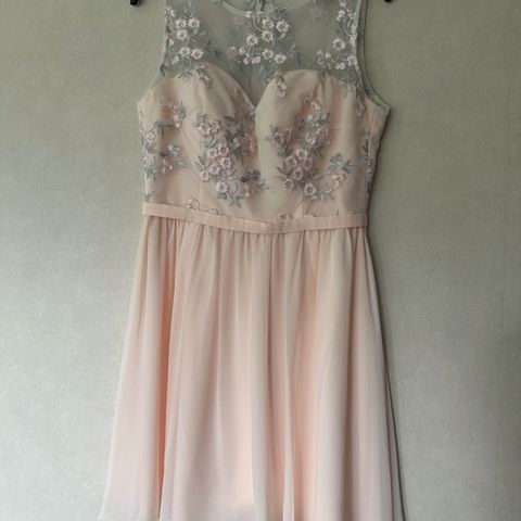Kaunis vaaleanpunainen juhlamekko. Itselläni ollut rippimekkona. Kerran päällä. Mielestäni vastaa kokoa M, lapussa 40/L. Little Mistress. Pieni nirhauma olkapäässä, näkyy kuvassa ja helposti ommeltavissa (voin ommella ostajalle)