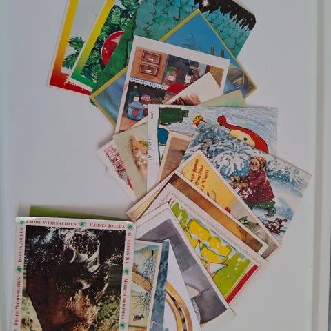 Tässä on vanhoja joulukortteja 1940-1960-vuosikymmeniltä. Kortit maksavat 1 euroa kappale. Postimaksu on 2,75 euroa kirjeessä 50 grammaan asti. Sen jälkeen painavampi kirje on 5,50 euroa.