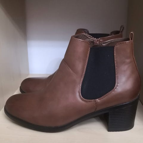 Naisten nilkkurit, koko 40. Väri musta, matala leveä korko ja sivuvetoketju. Koristehihnat ja kullanväriset yksityiskohdat nilkan ympärillä ja kannassa. Sopivat arki- ja siistimpään käyttöön syys- ja talvikaudelle.