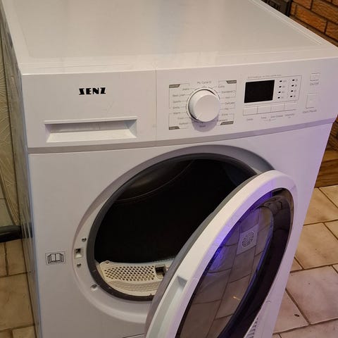 Vähällä käytöllä ollut lämpöpumpputekniikalla varustettu kondensoiva Hotpoint-kuivausrumpu. Uuden ovh. 649€.
