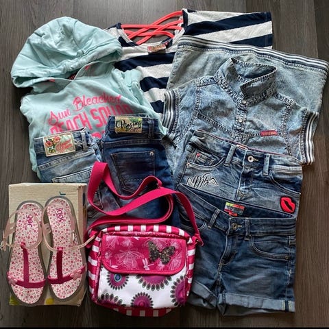 Kolme kesämekkoa 122/128 Dear Sophie ja Nosh merkeiltä.