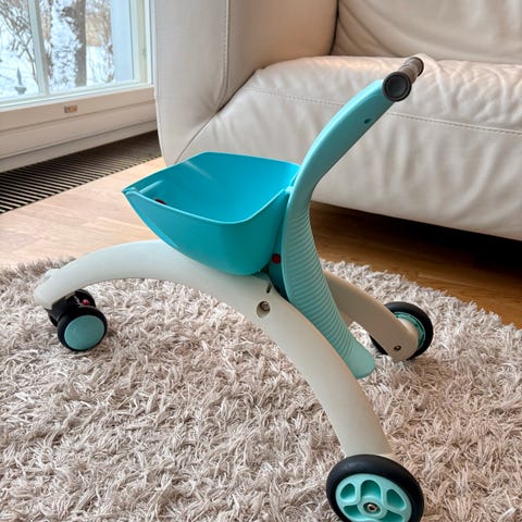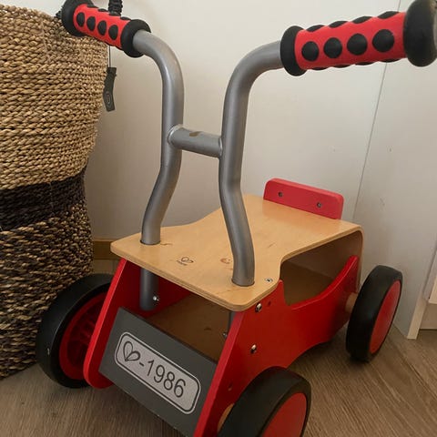 Puinen kärry kävelyn harjoitteluun. Kolhuja ja kulumaa, toimii silti hyvin. Käytetty vain sisällä. Vain nouto Vantaa Rajakylä.