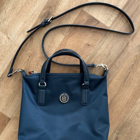 Tommy Hilfiger olkalaukku naisille. Laukku on valmistettu kankaasta ja väriltään tummansininen. Edessä on Tommy Hilfiger -logoteksti ja metalliset yksityiskohdat. Laukussa on pitkä säädettävä olkahihna. Nouto/postitus pk ostajalle.