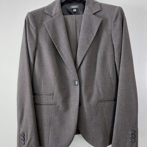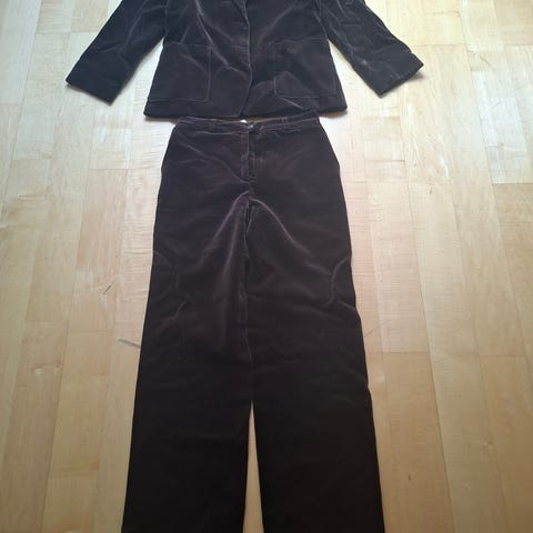 Erittäin siisti, pari kertaa päällä ollut -90 luvun housupuku. Jakku koko 38, vastaa enemmän 36 ja housut 34 vastaa 36. Aivan ihana päällä.