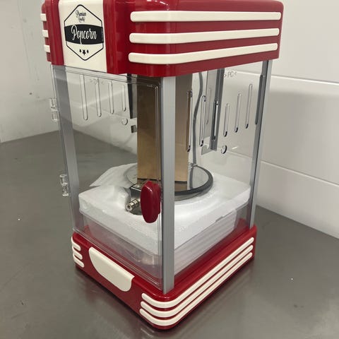 Popcorn laite, mukaan laatikollinen poppareita ja rasioita