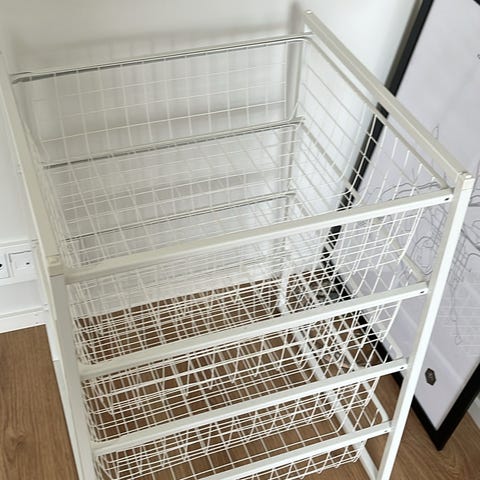 Myydään 2 kpl metallisia koritelineitä. Näppärät helpottamaan vaikka vaatekaapin järjestämistä. Voidaan pinota päällekkäin.
