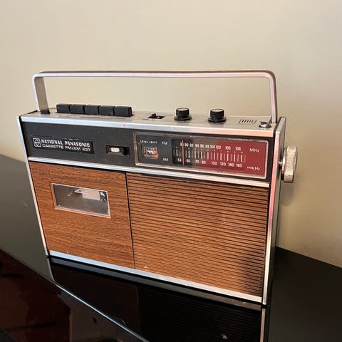 Myydään upea keräilykappale: National Panasonic RQ-512SD -matkaradio ja kasettisoitin.