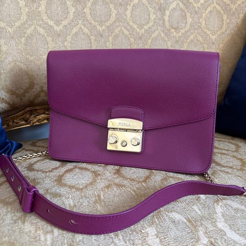 Furla nahkainen vaaleapunainen olkalaukku. Laukku on bucket-mallinen ja siinä on kiristysnyöri yläreunassa. Materiaalina on sileäpintainen nahka, jossa on kevyt struktuuri. Laukussa on säädettävä olkahihna ja metalliset kiinnitysosat. Sopii arjen käyttöön ja mukaan perusvarusteille, kuten lompakolle, puhelimelle ja pienille henkilökohtaisille tavaroille.