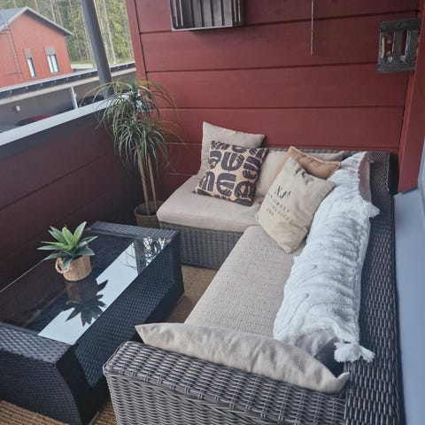 Sopii parvekkeelle tai terassille istuinryhmäksi useammalle henkilölle.
