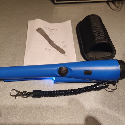 Pro-Pointer metalli-ilmaisin ja monitoimilapio. Metalli-ilmaisimessa on oranssi runko, painike käyttöä varten ja kiinnityslenkki. Monitoimilapiossa on teräväkärkinen, ruostumattoman teräksen värinen terä, jossa on useita aukkoja ja lovia eri käyttötarkoituksiin, sekä musta, kuvioitu kahva paremman otteen varmistamiseksi. Sopii esimerkiksi maaperän kaivamiseen ja pienten metalliesineiden paikantamiseen ulkokäytössä.