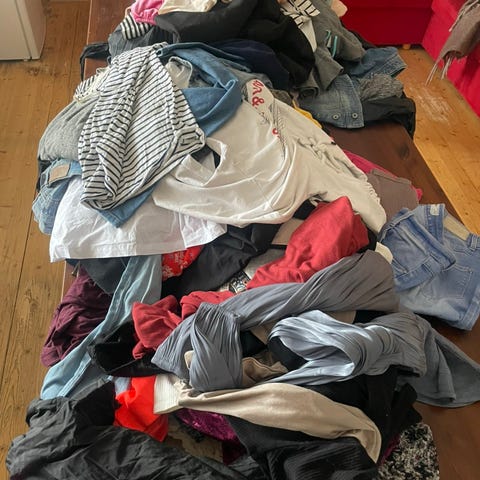 Mm. Neuletakki. Farkkuja toppeja hameita puseroita koot m-xl. Kaikkia ei kuvattu. Kerralla 20 euroa