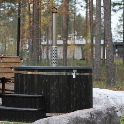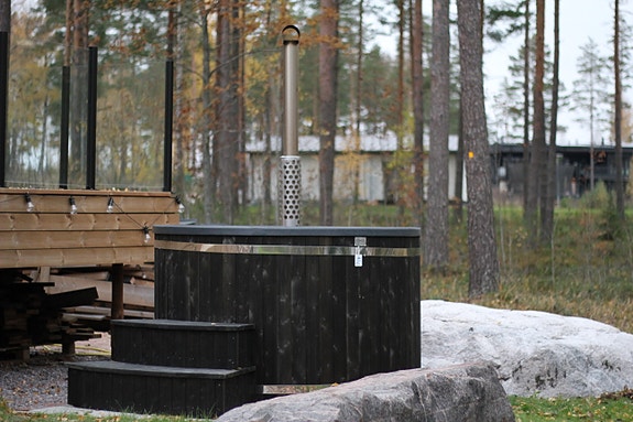 PW-SPA Freetime IN badtunna är en finsk design när den är som bäst. Den kombinerar elegans och effektivitet, med inbyggd kamin. Detta sparar utrymme, och all värme som kaminen ger kan användas för uppvärmning av badvattnet. Den flammande elden i glasluckan skapar en skön atmosfär för bad, och sprider ljus. Dessutom är det lätt att hålla ett öga på elden. Badtunnan har en diameter på 170 cm, och rymmer 4-6 personer samtidigt.