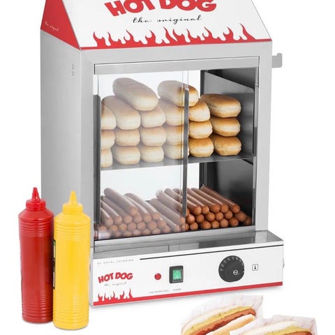 Tästä ihan kiva ja helppokäyttöinen hodarikone, jolla höyrystyy hyvin. Toimii tavallisella verkkovirralla.