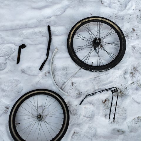 Runko ok siisti jossa osia kiinni. Eli ei vanteita, ne on myyty aiemmin, (jolloin pyörä ollut ajossa). Eli laakerit toimii, ketjut on paikalla. Kysy jos oot seudulta koska en voi lähettää.